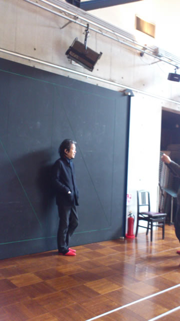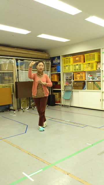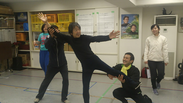 間もなく大きな稽古場での稽古。やっと手足が伸ばせる気分。楽しみ!」