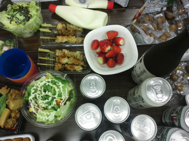 この日は新しいシーンとダンスや変更箇所の確認などなどのお稽古。そして日舞の藤間恵磨さんも初お目見え。なので稽古終わって、いただいた差し入れなどを囲み飲み会~(←全然「なので」ではなく...打合せ中の恵磨さんの横でとっとと先に飲み始める我々)