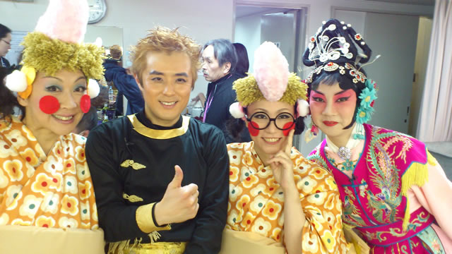 石山君演じる金烏の舞がはじまり、悩めるピー青年が登場します。さすがのピーさんも少し緊張気味。しっかり!と祈るような気持ちで見つめます。けれど、景を重ねていくうちに固さも徐々に解けてきて、共演者との息もあってきました。まずは、ほっとひと安心。終演後は、スタッフキャストの皆で初日のお祝い。京都へ向け、さらなる堅い絆を結びあった、かどうか…ワタシは風邪で出席できなかった(残念!)のでしりませんが…とにかく初日は無事に終わったのでありました。